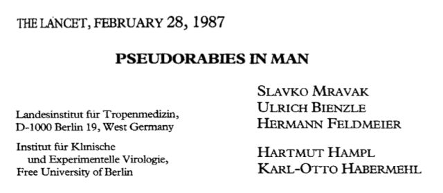 1987年发表于Lancet的文章报道了3例血清学阳性的